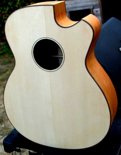 A one ring rosette does the job, the rest are fluff. There is top purfling because it simply looks wrong to me w/o it. ![]() No side purfling required. The back strip has a purpose as does the binding, MadRose in this case. ![]() More pictures as these develop. |